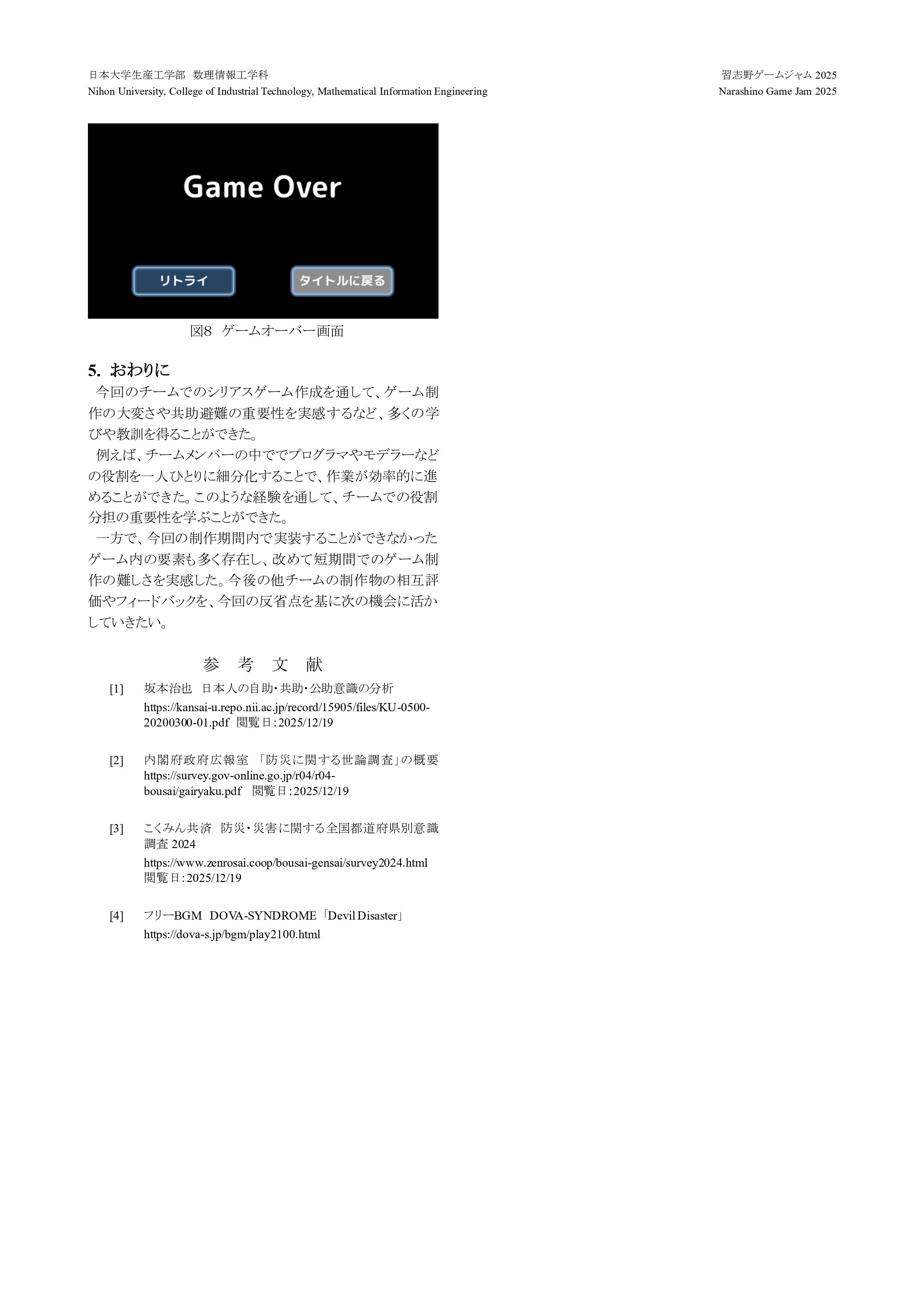ゲームを通して、プレイヤーが共助避難の重要性を知ることができるようにする。